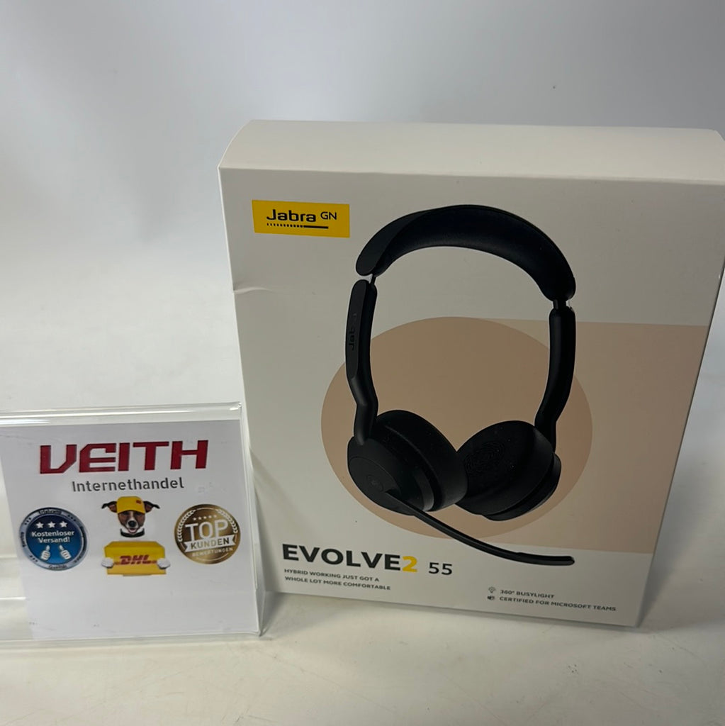 ✔️ Jabra Evolve2 55 - schnurloses Stereo-Headset mit Jabra Air Comfort - Mikrofone mit Geräuschunterdrückung und ANC - für MS Teams zertifiziert, mit anderen Plattformen kompatibel - Schwarz