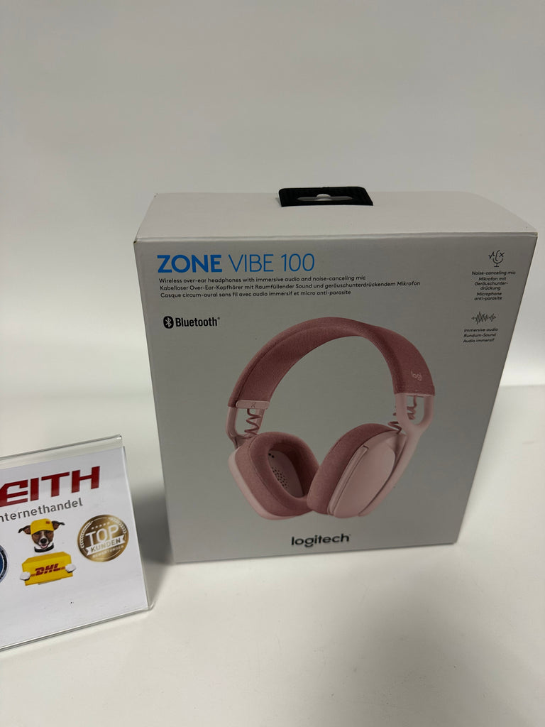 Logitech Zone Vibe 100 Leichte, kabellose Over-Ear-Kopfhörer mit geräuschunterdrückendem Mikrofon, Multipoint Bluetooth-Headset, Funktioniert mit Teams, Google Meet, Zoom, Mac/PC - Rosa NEU & OVP ✔️
