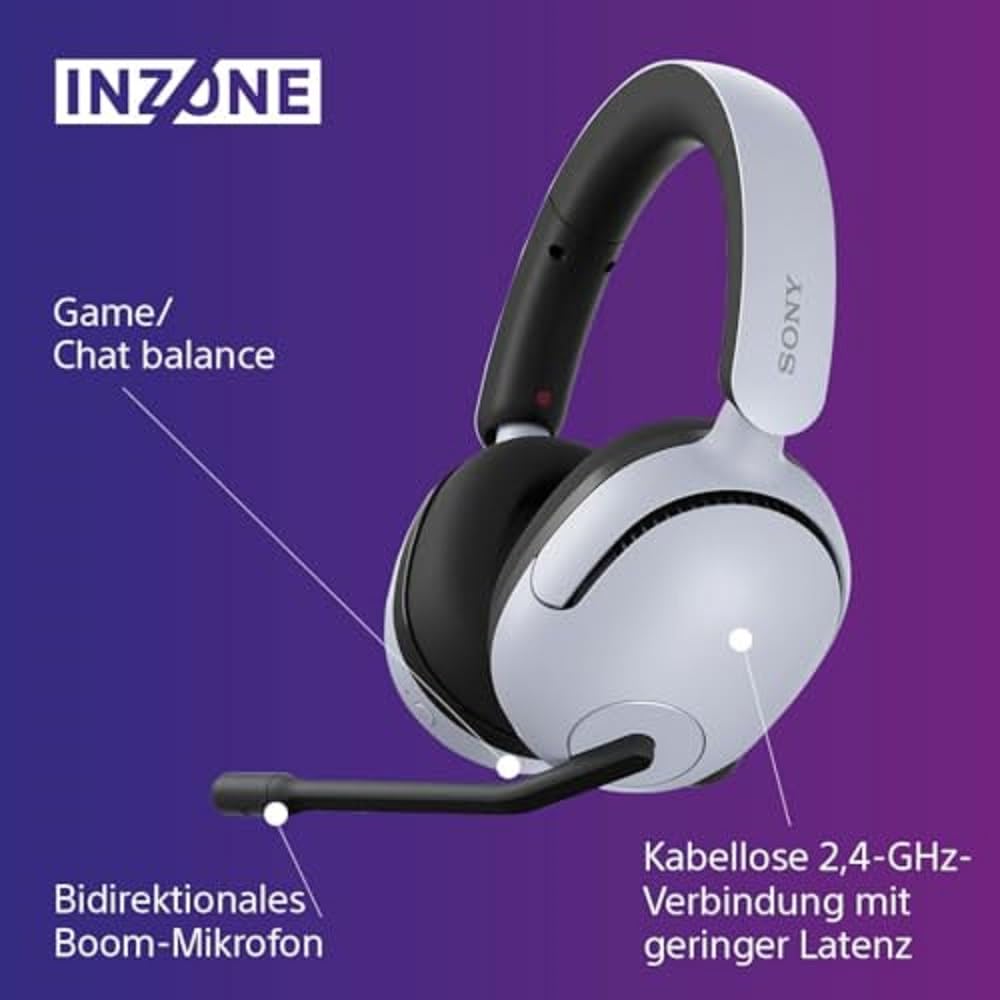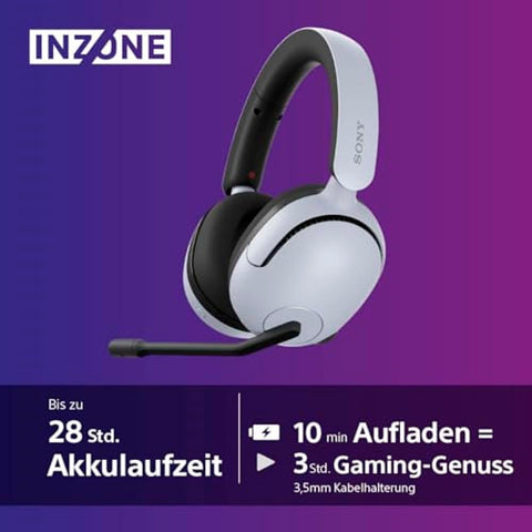 Sony INZONE H5 - Wireless Gaming Headset, 360 Spatial Sound für Gaming, komfortabler Sitz, 28 Std. Akkulaufzeit, geringe Latenz, Mikrofon mit AI, PC & PS5 kompatibel - Weiß