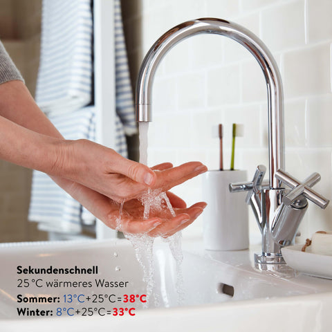 - 𝗦𝗢𝗙𝗢𝗥𝗧 𝗪𝗔𝗥𝗠𝗘𝗦 𝗪𝗔𝗦𝗦𝗘𝗥 𝗢𝗛𝗡𝗘 𝗪𝗔𝗥𝗧𝗘𝗭𝗘𝗜𝗧 – Kein Speichern, Wasser wird direkt im Durchfluss erhitzt.