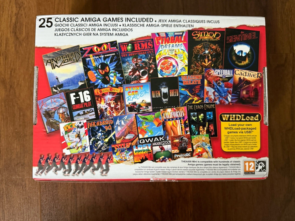 - Inhalt: TheA500 Mini, 2-Tasten-USB-Maus (1,8 m Kabel), 8-Tasten-USB-Gamepad (1,8 m Kabel), USB-C-Stromkabel (1,8 m) und HDMI Kabel (1,8 m)