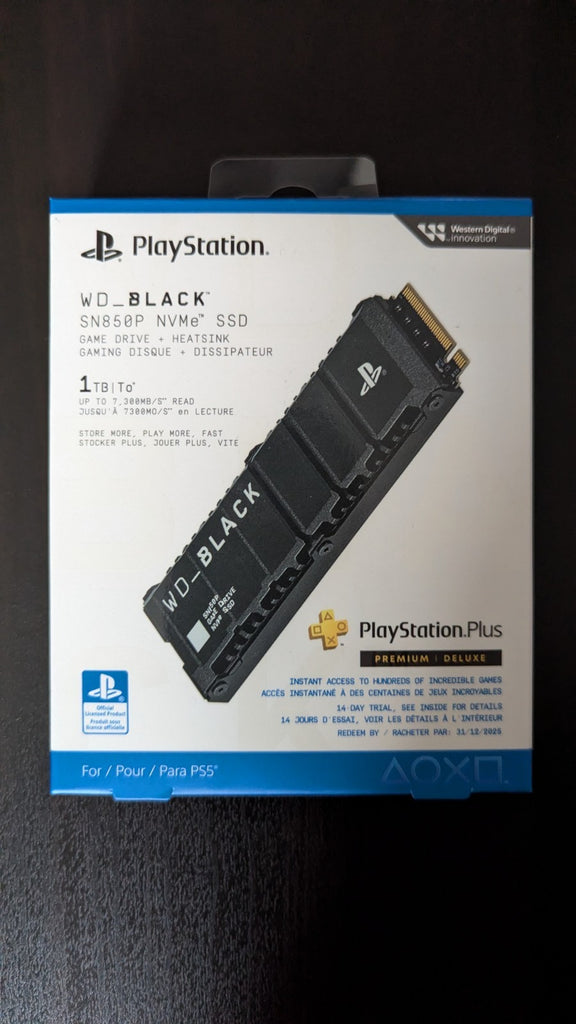 - Lieferumfang: WD_BLACK SN850P 1 TB NVMe SSD Offiziell Lizenziert für PS5 Konsolen (interne Gaming SSD; optimierter Kühlkörper; PCIe Gen4 Technologie, bis zu 7.300 MB/s Lesen, M.2 2280)